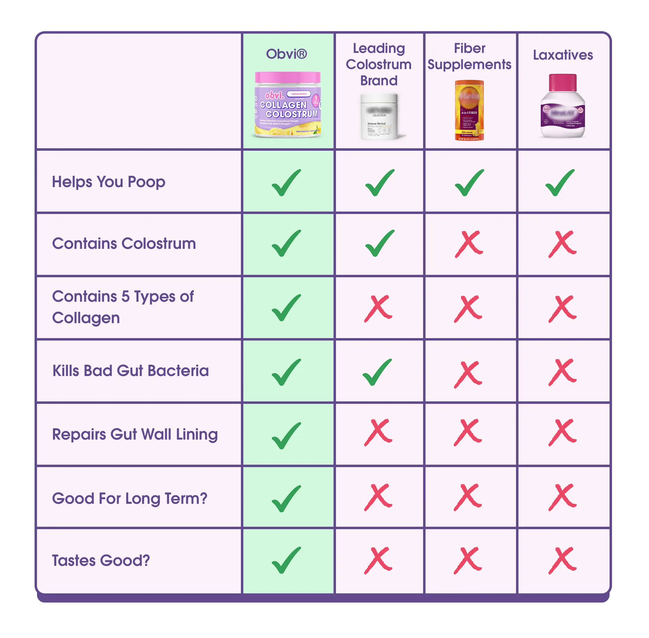 You've tried fiber, laxatives, and everything else. Nothing worked long-term because they don't fix the real problem, your damaged gut wall and bad bacteria. Obvi's Collagen Colostrum actually repairs what's broken so you can poop normally again. Don't waste another month feeling miserable and bloated.